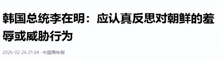 4、2026-02-26 中国后生报 韩国总统李在明:应崇敬反想对朝鲜的期侮或挟制行为