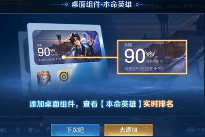 这个功能如故挺好玩的,可以通过这个桌面小组件看到我方本命英豪的战力排名,心爱打战力冲排名的玩家,目下可以像看炒股同样及时去关心我方的排名了,思思还挺格外旨真义的,这边吃着饭,发现我方掉下了国榜,这饭吃着还香吗,哈哈。