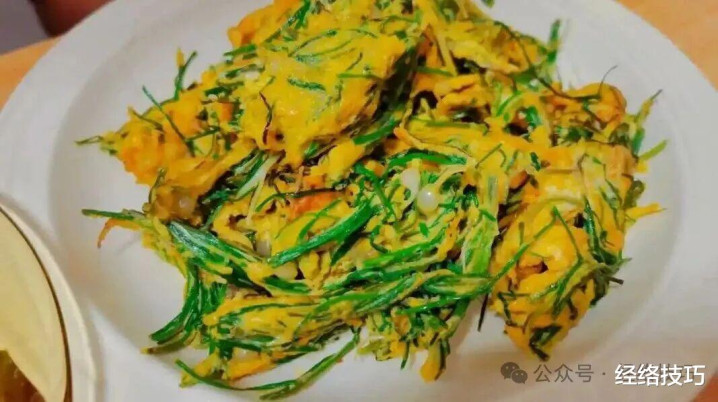 把薤白切碎,和鸡蛋扫数搅匀,放些盐煎成蛋饼,鸡蛋软软的,能压住薤白的冲味,吃起来软乎乎还很香,老东说念主和孩子皆挺可爱。