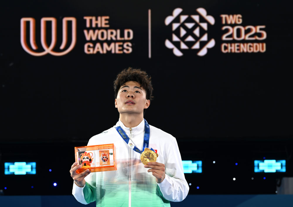 2025年8月17日,亓祥宇在2025年景皆世运会男人单人轰隆舞金牌战的比赛中夺冠。新华社记者 李嘉南 摄