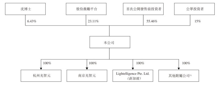 IPO后,沈亦晨博士奏凯持股为6.43%,有光熠辉持股为9.33%,有光致远持股为5.2%,LightAI EIP持股为4.73%,Mach C持股为3.85%。