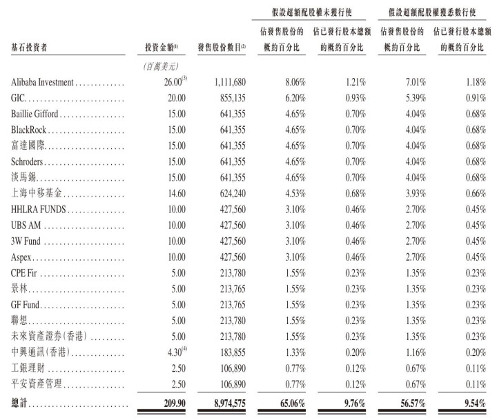 其中,阿里认购2600万好意思元,GIC认购2000万好意思元,Baillie Gifford、BlackRock、富达海外、Schroders、淡马锡区分认购1500万好意思元,上海中移基金认购1460万好意思元;