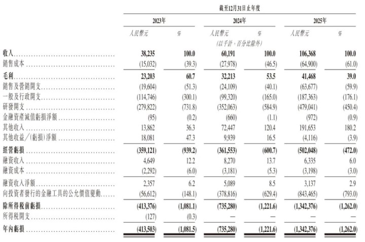 招股书骄气,曦智科技2023年、2024年、2025年营收区分为3823.5万元、6019万元、1.06亿元;毛利区分为2320万、3221万、4147万元;毛利率区分为60.7%、53.5%、39%。