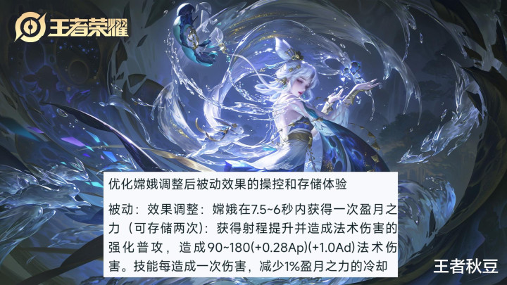 嫦娥被迫优化。被迫不错存储两次,赢得射程进步并形成法术伤害的强化普攻,主淌若手段形成伤害还能减少被迫的1%的冷却。嫦娥的改变要和前次的改变总计看: