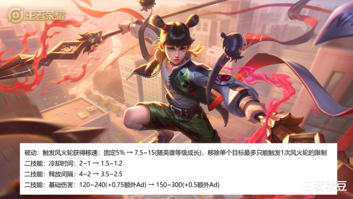 哪吒被迫和二手段改变。被迫触发风火轮的移速从固定5%调治为7.5-15,移除了单个指标最多只可触发一次风火轮的完了。