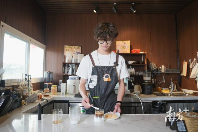 咖啡师在制作丝苗米特调。张令 郜曈 摄