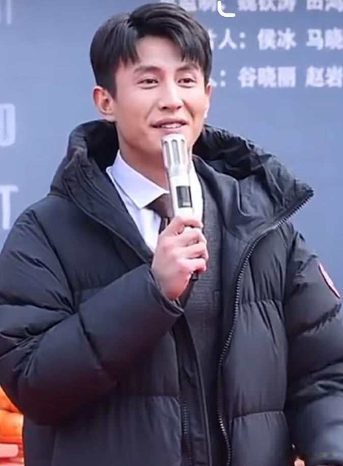 开机典礼上圈套天,刘萧旭身着深玄色修身长款羽绒服,内搭极简白色圆领T恤,下身搭配同色系西裤与小白鞋,莫得过剩配饰,利落又深切。